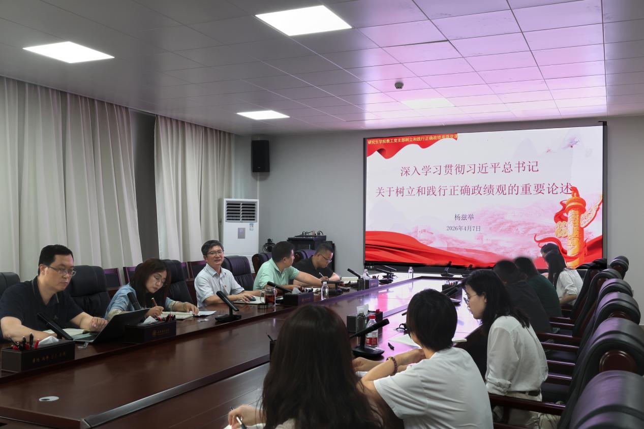 会上,杨兹举结合研究生教育工作实际,提出树立和践行正确政绩观的具体实施目标:锚定育人初心,将思想政治教育贯穿研究生培养全过程;完善质量评价体系,破除“唯论文”倾向,注重培养研究生的创新与实践能力;建强导师队伍,落实育人责任清单;优化管理服务,推进信息化建设,切实解决师生急难愁盼问题。他强调,全体党员要以“功成不必在我”的胸怀和“功成必定有我”的担当,把正确政绩观融入日常工作,以实干实绩推动研究生教育高质量发展。